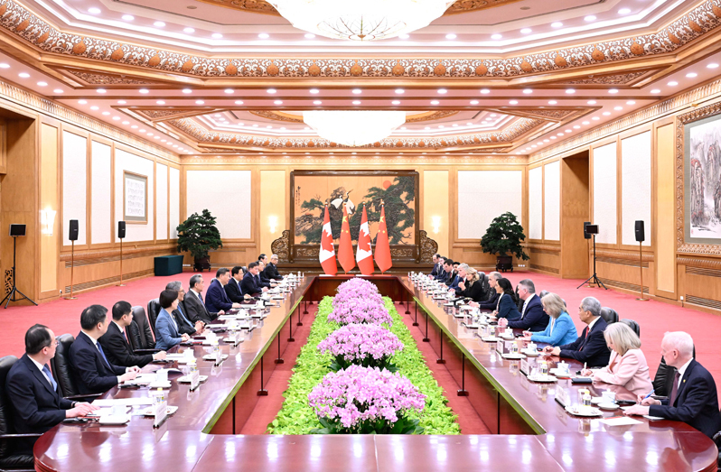 1月16日上午,国家主席习近平在北京人民大会堂会见来华进行正式访问的加拿大总理卡尼。新华社记者 谢环驰 摄
