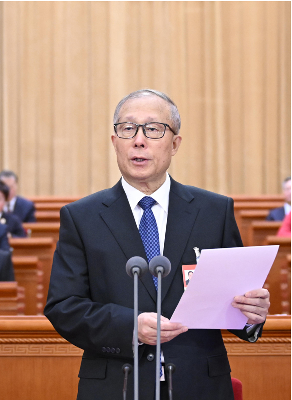 受全国人大常委会委托,赵乐际委员长向大会报告全国人大常委会工作。赵乐际在报告中指出,2025年是很不平凡的一年。一年来,在以习近平同志为核心的党中央坚强领导下,全国人大常委会坚持以习近平新时代中国特色社会主义思想为指导,全面贯彻落实党的二十大和二十届历次全会精神,学习贯彻习近平法治思想、习近平总书记关于坚持和完善人民代表大会制度的重要思想,聚焦建设更加完善的中国特色社会主义法治体系、建设更高水平的社会主义法治国家,紧紧围绕中国式现代化建设依法履职、担当尽责,各方面工作取得新的进展和成效。一是加强宪法实施和监督,维护国家法治统一。常委会两次审议民族团结进步促进法草案并提请本次大会审议,为铸牢中华民族共同体意识夯实法治根基。设立台湾光复纪念日,强化两岸同胞共同民族历史记忆。提高合宪性审查、备案审查工作质量,弘扬宪法精神、社会主义法治精神。二是加强立法工作,以高质量立法服务和保障改革发展。统筹立改废释纂,一年来共审议法律、法律解释、决定草案40件,通过其中24件,包括制定法律6件,修改法律14件等。三是履行监督职责,充分发挥人大监督在党和国家监督体系中的重要作用。共听取审议22个监督工作的报告,检查5件法律实施情况,组织开展2次专题询问、11项专题调研,作出1项决议。四是深化和拓展代表工作,更好发挥人大代表作用。全面贯彻实施新修改的代表法,持续加强代表工作能力建设,紧紧依靠代表做好各项工作,支持和保障代表依法履职。五是发挥人大对外交往特点优势,主动服务国家外交大局。六是全面加强自身建设,不断提高依法履职能力和水平。