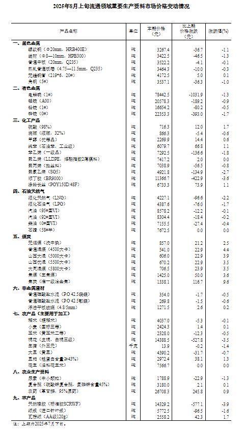 8月上旬流通领域重要生产资料市场价格:18涨29降3平