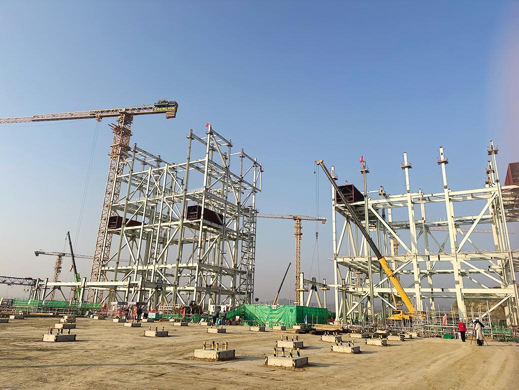 “你看,那就是一号机组的锅炉钢架,已经‘长’到第三层了。”顺着项目土建负责人周福海手指的方向望去,两台机组庞大的锅炉钢铁骨架已初具规模,在蓝天下显得格外雄伟。