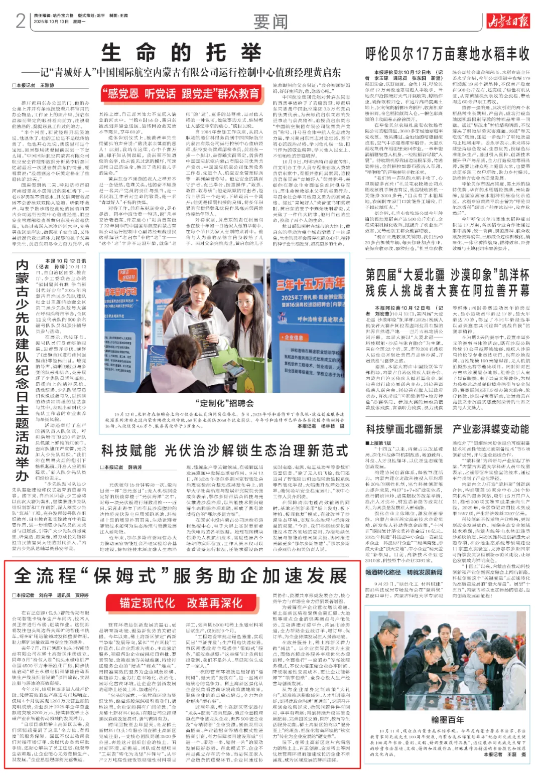 “工程建设审批走绿色通道,实现同日‘三证齐发’;生产用电快速拉通,市区两级政府全程提供‘保姆式’服务。”颜汉森感慨:“这些细节让我真切感受到,我们不是外人,早已和包头成了一家人。”