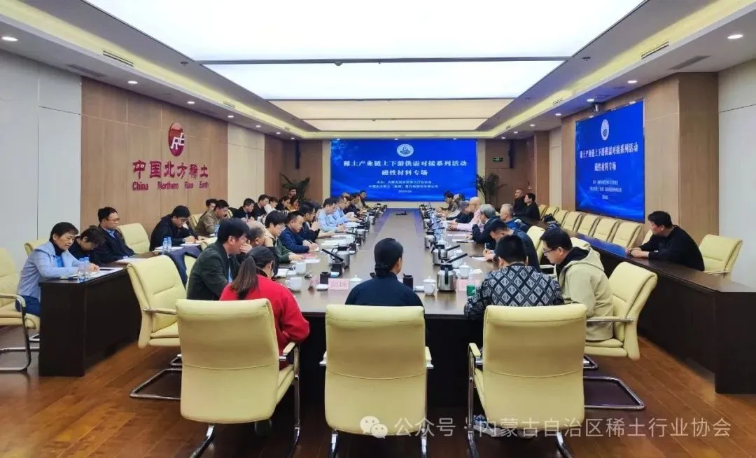 为贯彻落实《国务院关于推动内蒙古高质量发展奋力书写中国式现代化新篇章的意见》文件精神,按照内蒙古自治区先进制造业集群发展促进组织相关要求,加快“两个稀土基地”建设,力争将稀土产业打造成为国家级先进制造业集群,服务稀土产业链上中下游协同联动集群发展。3月29日,内蒙古自治区稀土产业链上下游供需对接系列活动——磁性材料专场召开。本次活动由内蒙古自治区稀土行业协会联合链主企业中国北方稀土(集团)高科技股份有限公司共同举办。