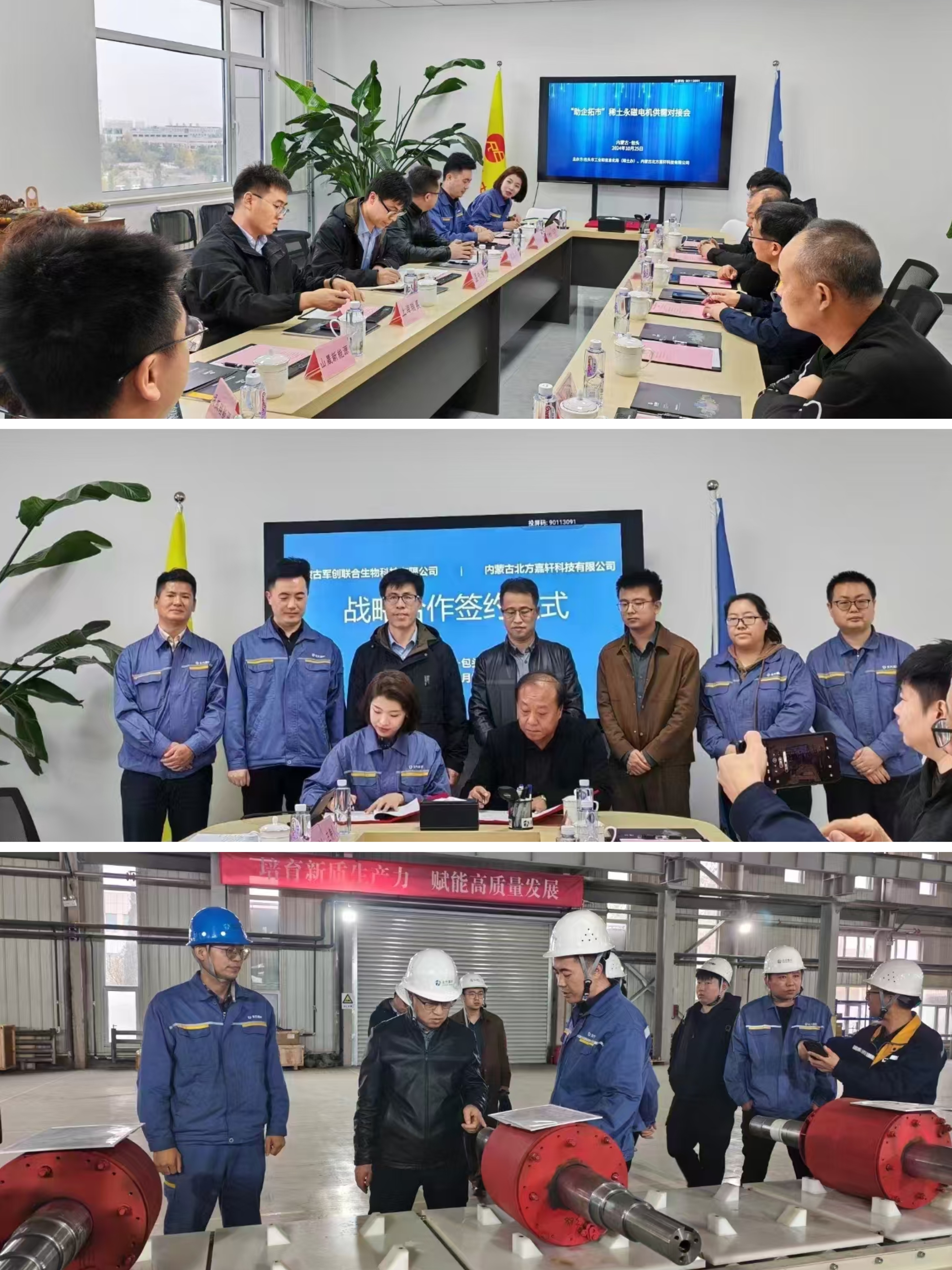 会上,市政府崔海斌秘书长致辞,市工信局温永清副局长围绕稀土永磁电机替代政策进行宣贯解读,北方嘉轩和内蒙优普森围绕企业发展情况进行介绍并就稀土永磁电机产品进行推介,与会需求企业介绍了自身电机需求。北方嘉轩与军创生物举行签约仪式,达成一期两千万的合作。崔海斌副秘书长和温永清副局长在北方嘉轩生产车间详细了解了各企业生产情况及存在困难,并提出解决意见。同时鼓励与会企业互相合作、互惠共利。指导企业把握好、运用好当前稀土永磁电机替代政策机遇,进一步释放产能。