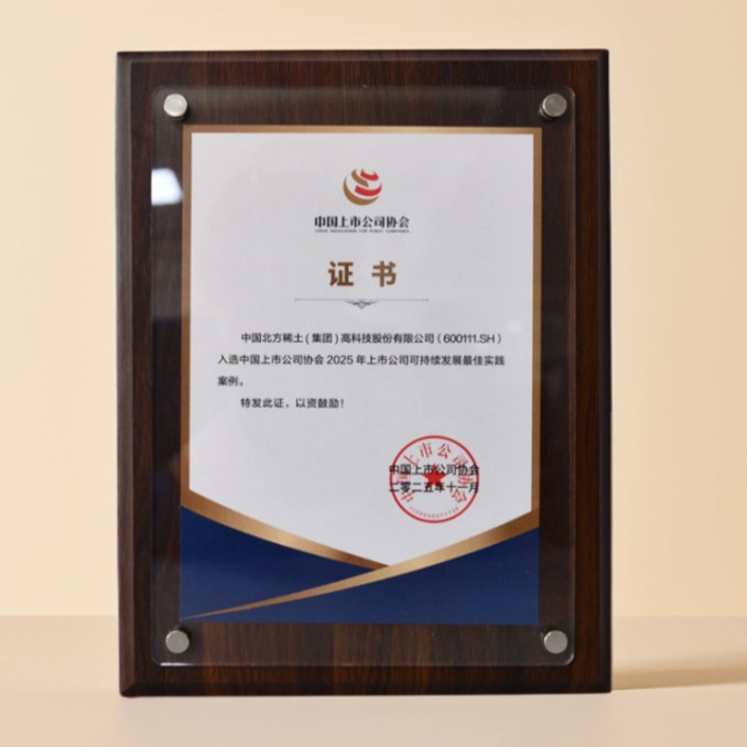 近日,中国上市公司协会召开上市公司可持续发展交流会并发布2025年上市公司可持续发展最佳及优秀实践案例,北方稀土入选2025年上市公司可持续发展最佳实践案例。