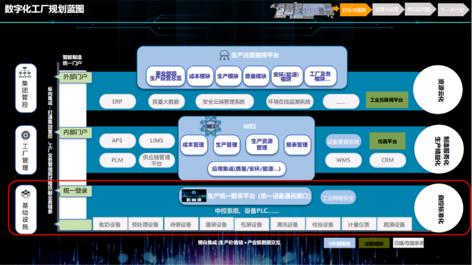 在原有的工厂的智能单机、中控控制系统、SAP、ERP、LIMS、自动物料供应和自动CIP系统进行了互联互通,解决了信息传递不及时、不准确出现的决策困难及滞后的问题。同时把多个系统统一界面展示操作,减少了人员的操作时间和失误几率,解决了潜在的质量和安全隐患。