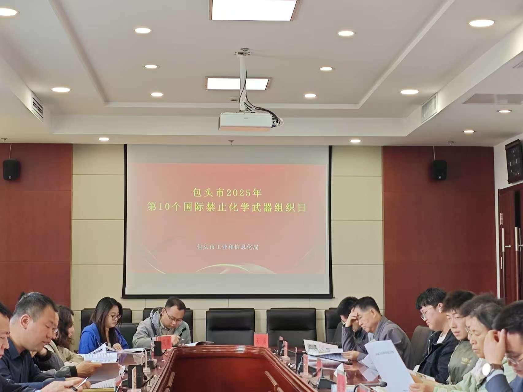 4月29日上午,市工信局组织召开第10个国际禁止化学武器组织日宣传活动会议,各旗县区工信局、园区管委会以及13户化工企业负责人参会,梁雁新副局长主持会议。