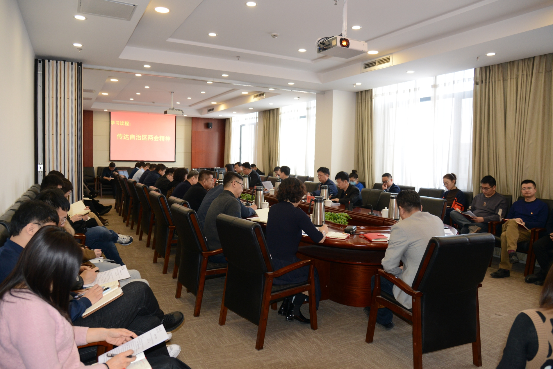 1月29日,市工信局召开党组理论学习中心组会议,专题传达学习自治区“两会”精神及石泰峰书记参加呼和浩特市、兴安盟和鄂尔多斯市代表团审议时的讲话精神、王莉霞主席参加包头市和乌海市代表团审议时的讲话精神。市工信局党组书记、局长刘永明主持会议并讲话,市工信局领导班子成员,局机关全体工作人员和二级单位主要负责同志参加会议。