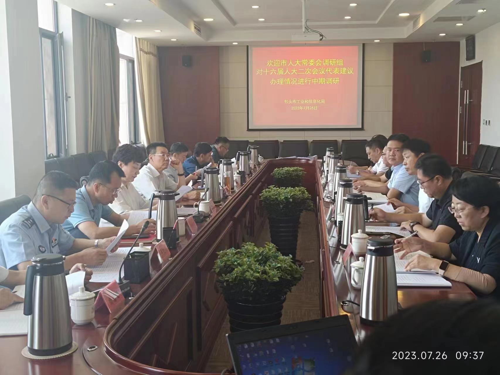 姜彬副局长代表我局做汇报发言。2023年,市十六届人大二次会议共交办市工信局人大代表建议52件,其中,主办27件、协办25件,截至目前,主办件除61件建议正在办理中,其余26件建议均已按时办理并答复完毕,办结率和代表满意率均达100%,同时,25件协办件均按时保质向主办单位提供。调研组一行对我局办理工作给予充分肯定。