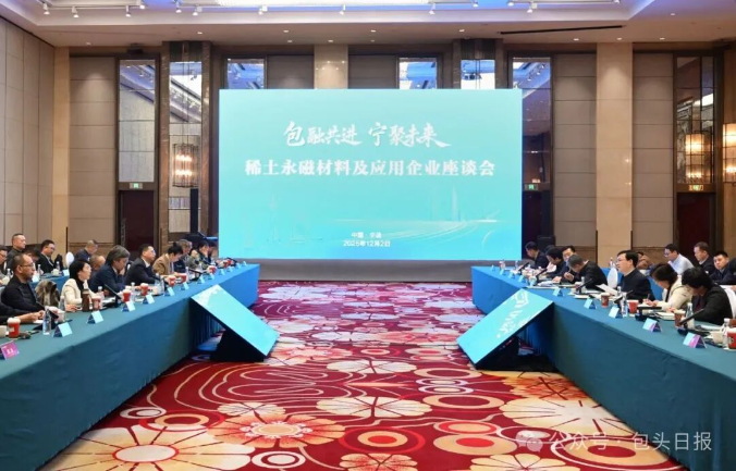 在宁波市,陈之常主持召开稀土永磁材料及应用企业座谈会,与宁波韵升、英洛华等14家企业负责人深入研究交流,了解企业基本情况、发展规划,听取对包头稀土产业发展的建议。陈之常说,面向“十五五”,包头市将扛牢使命、抢抓机遇,全力打造稀土先进制造旗帜型产业集群,希望与各位企业家在产业链延伸、产业生态构筑等方面深化合作,共同推动“两个稀土基地”建设取得更大成效。