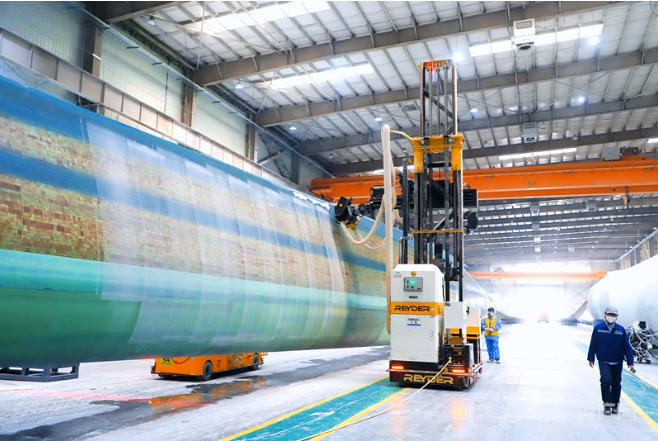 “车间年产能达1500-1800支,过去12人8小时的打磨作业,现在7人就能完成,效率大幅提升。”明阳北方智慧能源(内蒙古)有限公司叶片厂工艺科科长李彪介绍,今年车间还将引入铺层激光定位投影仪等设备,进一步推动生产向高效、精准、绿色化迈进。
