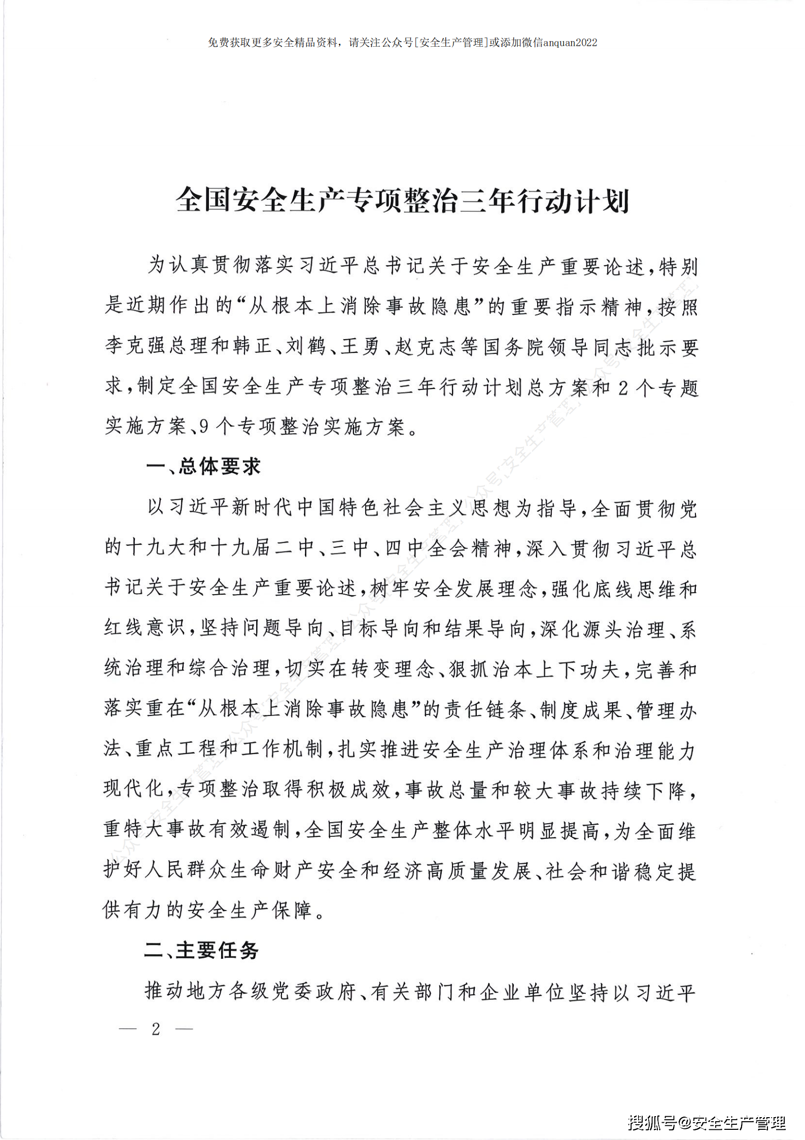 《全国安全生产专项整治三年行动计划》