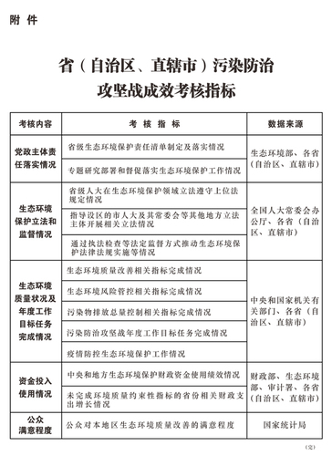 《省(自治区、直辖市)污染防治攻坚战成效考核措施》全文如下。