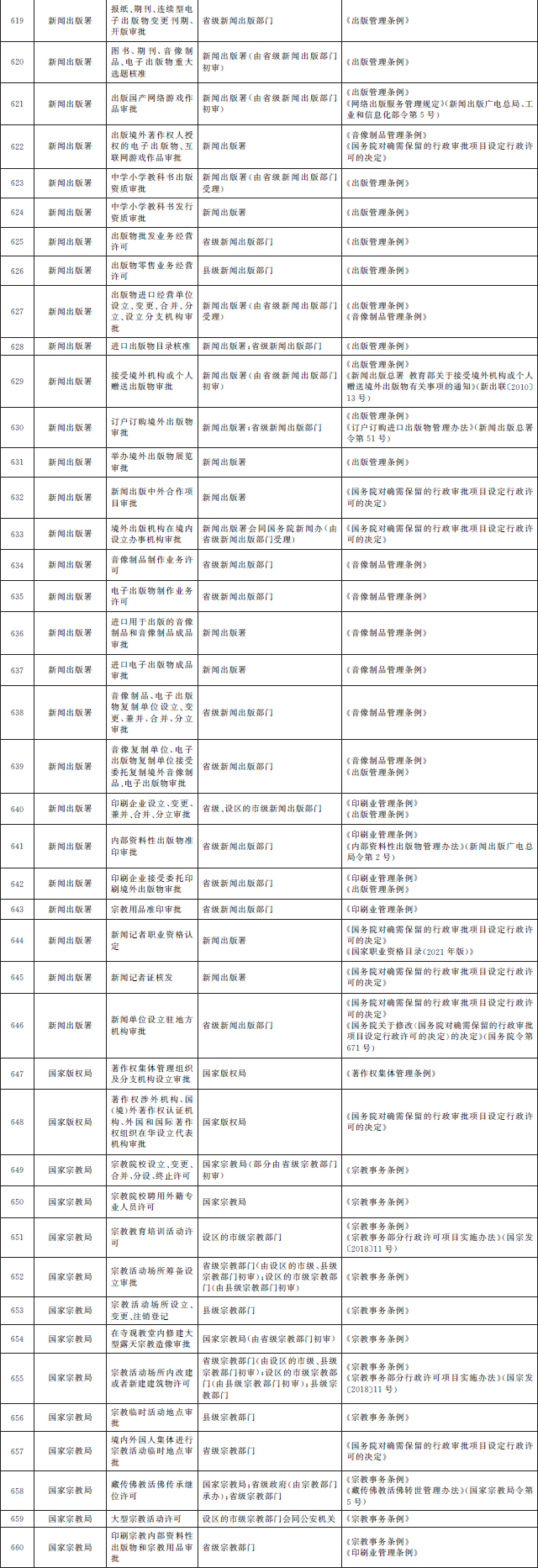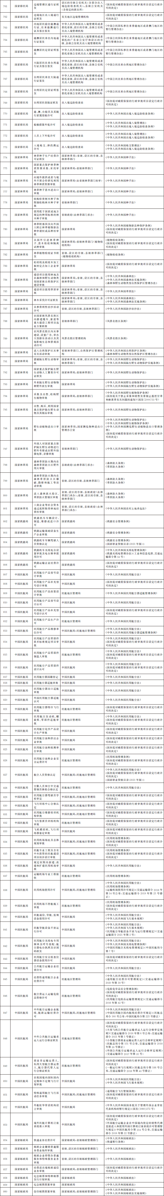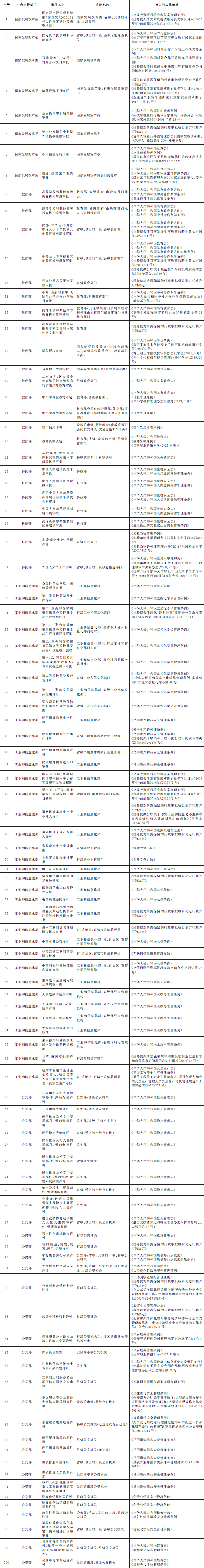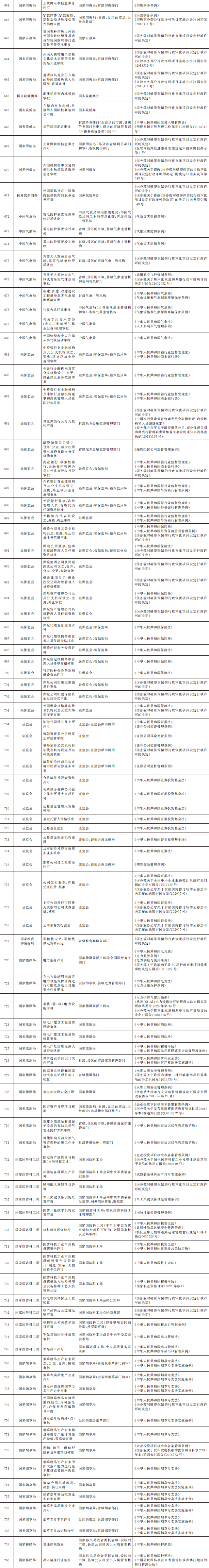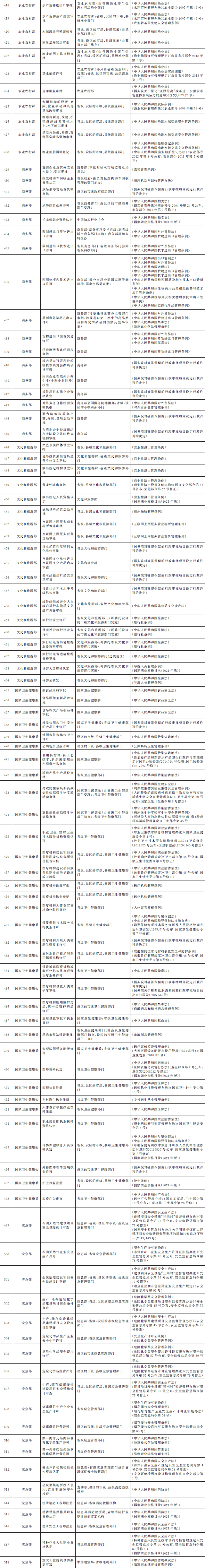 国务院办公厅关于全面实行 行政许可事项清单管理的通知 国办发〔2022〕2号 各省、自治区、直辖市人民政府,国务院各部委、各直属机构: 行政许可是政府依法管理经济社会事务的重要手段。全面实行行政许可事项清单管理,是深化“放管服”改革优化营商环境的重要举措,有利于明晰行政许可权力边界、规范行政许可运行,为企业和群众打造更加公平高效的审批环境,对于推进政府治理体系和治理能力现代化意义重大。为做好全面实行行政许可事项清单管理工作,经国务院同意,现通知如下: 一、总体要求 (一)指导思想。以习近平新时代中国特色社会主义思想为指导,全面贯彻党的十九大和十九届历次全会精神,认真落实党中央、国务院关于深化“放管服”改革优化营商环境的决策部署,正确处理政府和市场、政府和社会的关系,依法编制、严格实施行政许可事项清单,持续推进行政许可标准化、规范化、便利化,加强事前事中事后全链条全领域监管,不断提高审批效率和监管效能,更大激发市场活力和社会创造力,促进经济社会高质量发展。 (二)工作目标。2022年底前,构建形成全国统筹、分级负责、事项统一、权责清晰的行政许可事项清单体系,编制并公布国家、省、市、县四级行政许可事项清单,将依法设定的行政许可事项全部纳入清单管理,清单之外一律不得违法实施行政许可。对清单内事项逐项编制完成行政许可实施规范,大幅提升行政许可标准化水平,“十四五”时期基本实现同一事项在不同地区和层级同要素管理、同标准办理。 二、依法编制行政许可事项清单 (三)明确清单编制责任。国务院审改办负责组织国务院有关部门编制《法律、行政法规、国务院决定设定的行政许可事项清单》,报国务院审定后向社会公布。县级以上地方人民政府牵头推进行政审批制度改革工作的机构(以下称审改牵头机构)负责组织梳理上级设定、本地区实施的行政许可事项和本地区地方性法规、省级政府规章设定的行政许可事项,编制本地区行政许可事项清单,报同级人民政府审定后向社会公布,并抄送上一级审改牵头机构。 (四)统一清单编制要求。各级行政许可事项清单应当逐项明确事项名称、主管部门、实施机关、设定和实施依据等基本要素。各地区行政许可事项清单中上级设定、本地区实施的事项及其基本要素,不得超出上级清单的范围,确保事项同源、统一规范。省、市、县三级清单应当于2022年底前编制完成。依托全国一体化政务服务平台,建设全国行政许可管理系统,将国家、省、市、县级行政许可事项清单全部纳入系统管理。 (五)及时动态调整清单。法律、法规、规章草案拟新设或者调整行政许可的,起草部门应当充分研究论证,并在起草说明中专门作出说明;司法行政部门在草案审查阶段,应当征求同级审改牵头机构意见。行政许可正式实施前,有关部门应当提出调整行政许可事项清单的申请,审改牵头机构应当及时进行调整,行政许可实施机关做好实施前准备。因深化行政审批制度改革需要动态调整行政许可事项清单的,参照上述程序办理。上级清单作出动态调整的,下级清单要及时相应调整。 (六)做好有关清单衔接。市场准入负面清单、政务服务事项基本目录、“互联网+监管”事项清单、投资项目审批事项清单、工程建设项目审批事项清单等中涉及的行政许可事项,应当严格与行政许可事项清单保持一致并做好衔接。行政许可事项清单调整的,有关清单要适时作出相应调整。健全审改牵头机构与其他清单主管部门的沟通协调机制,协同做好清单内容对接匹配。 三、严格依照清单实施行政许可 (七)科学制定行政许可实施规范。对清单内的行政许可事项要逐项制定实施规范,结合实施情况确定子项、办理项,明确许可条件、申请材料、中介服务、审批程序、审批时限、收费、许可证件、数量限制、年检年报等内容,并向社会公布。法律、行政法规、国务院决定设定的行政许可事项原则上由国务院有关部门制定实施规范。对各地区实施规范存在差异、影响跨区域通办的事项,国务院有关部门要研究提出解决方案,制定衔接办法。地方性法规、省级政府规章设定的行政许可事项,由省级、设区的市级人民政府有关部门制定实施规范。 (八)依法依规实施行政许可。行政许可实施机关要依照行政许可实施规范制定办事指南,并向社会公布。办事指南一经公布,必须严格遵照执行,不得随意增加许可条件、申请材料、中介服务、审批环节、收费、数量限制等,不得超时限办理行政许可,但可以作出有利于行政相对人的合理优化调整。在严格执行办事指南的同时,各地区、各部门要按照政务服务标准化、规范化、便利化要求,通过推行告知承诺、集成服务、一网通办、跨省通办等改革措施,更好满足企业和群众办事需求。 (九)严肃清查整治变相许可。各地区、各部门要严格落实清单之外一律不得违法实施行政许可的要求,大力清理整治变相许可。在行政许可事项清单之外,有关行政机关和其他具有管理公共事务职能的组织以备案、证明、目录、计划、规划、指定、认证、年检等名义,要求行政相对人经申请获批后方可从事特定活动的,应当认定为变相许可,要通过停止实施、调整实施方式、完善设定依据等予以纠正。 四、加强事前事中事后全链