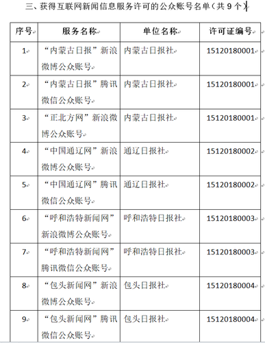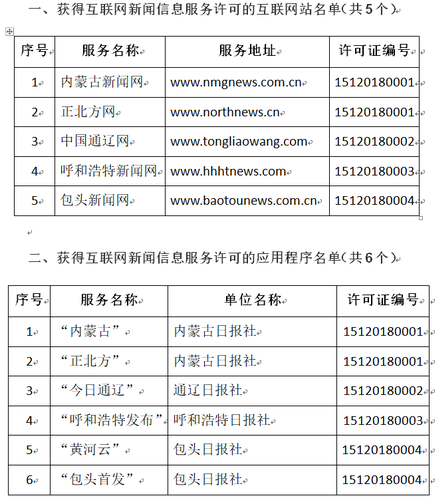 内蒙古自治区互联网新闻信息服务单位许可信息