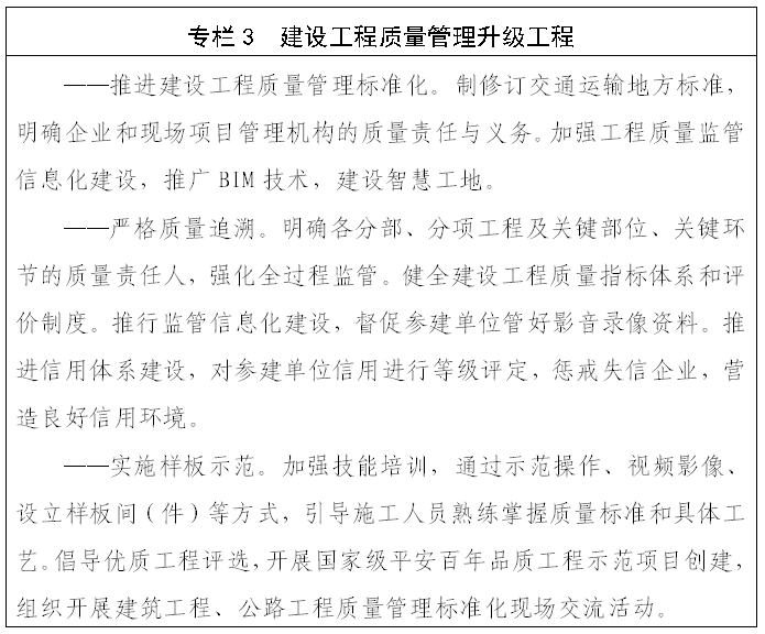 (十三)强化工程质量监管。实施工程质量信息公开制度,落实工程建设质量终身责任制、工程质量安全手册制度。健全自治区、盟市、旗县三级管理体系,提升监管部门信息化监管能力和效能。强化责任追究追溯,督促落实工程质量终身责任书面承诺制、永久性标牌制、质量信息档案等制度。落实项目法人责任制,将项目法人招标、发包、拨付工程款等行为列入重点监管内容。推进全过程质量管理标准化,推动建立工程参建各方责任明晰的质量保证体系。强化工程建设全过程质量监管,完善质量监督检查制度,推动监督队伍专业化建设。鼓励引入检测、监理等第三方机构辅助开展工程质量监督抽查。落实工程质量保修责任,加强工程运营管护。建立工程质量企业信用评价机制,将信用评价结果纳入招标评审范围,加强标后合同履约监管。