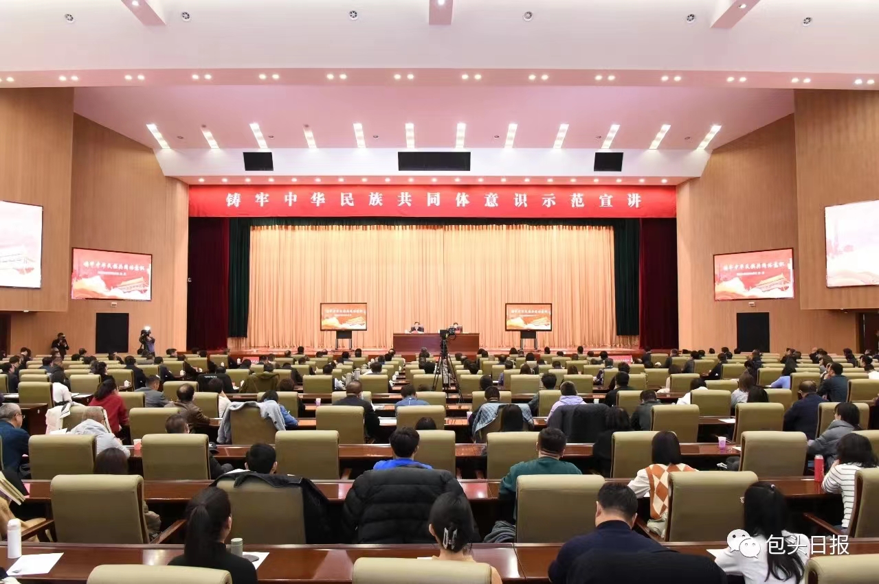 丁绣峰在报告会上强调,全市各级党员干部要结合开展主题教育,深学细研习近平总书记关于加强和改进民族工作的重要思想,在各项工作中认真落实铸牢中华民族共同体意识这条主线,有形有效有感、久久为功做好各项工作。要坚持物质文明与精神文明两手发力,把铸牢中华民族共同体意识贯穿到经济社会发展各方面,全面落实全方位建设模范自治区各项任务。要讲好包头民族团结故事,挖掘好、宣传好“齐心协力建包钢”、“草原英雄小姐妹”等民族团结进步佳话,打造更多体现各族干部群众团结奋斗建设包头的标志标识,让铸牢中华民族共同体意识更加深入人心。要压紧压实各旗县区各部门各单位党委(党组)主体责任,推动统战、民委等部门认真履职尽责,切实提高广大党员干部做好民族工作的本领,扎实推动铸牢中华民族共同体意识各项工作落实落细。